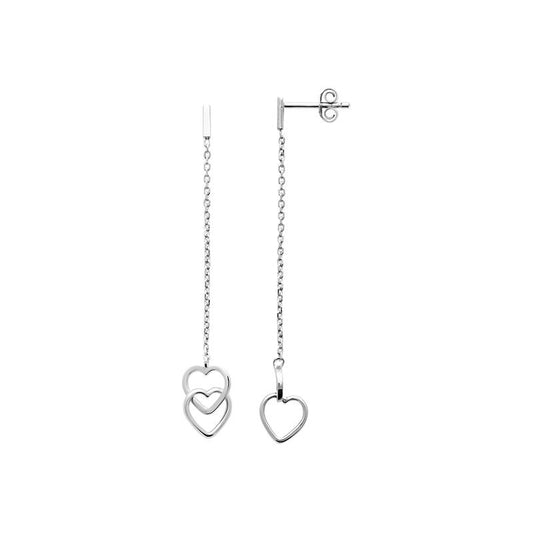 Boucles d'oreilles chaîne 2 coeurs entrelacés en argent
