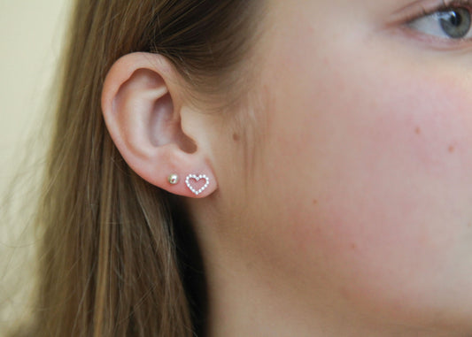 Boucles d'oreilles puces coeur serties de zircons en argent