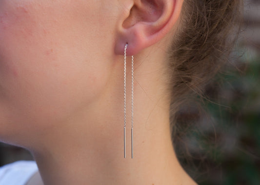 Boucles d'oreilles chaîne traversante en argent - Boucles d'oreilles pendantes chaînette
