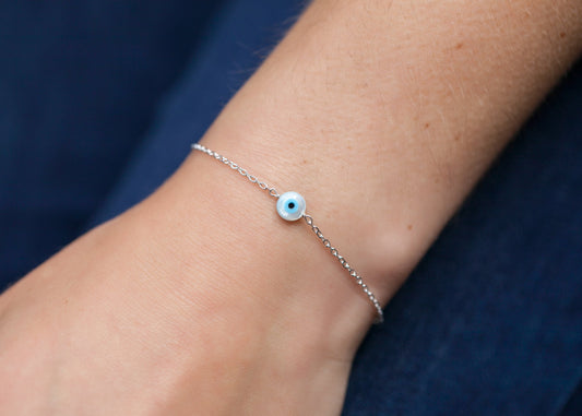 Bracelet oeil bleu en argent - Bracelet protection mauvais oeil