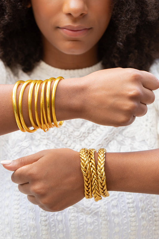 Jonc bouddhiste tressé porte-bonheur, bracelet tibétain doré