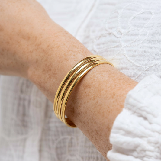 Bracelet jonc doré triple anneaux – acier inoxydable