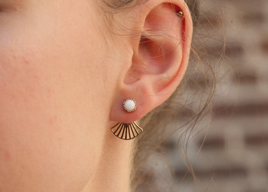 Boucles d'oreilles dessous de lobe perle blanche plaqué or