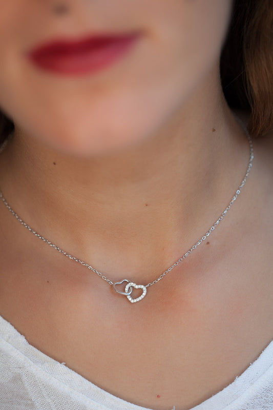Collier 2 coeurs entrelacés en argent serti de zircons