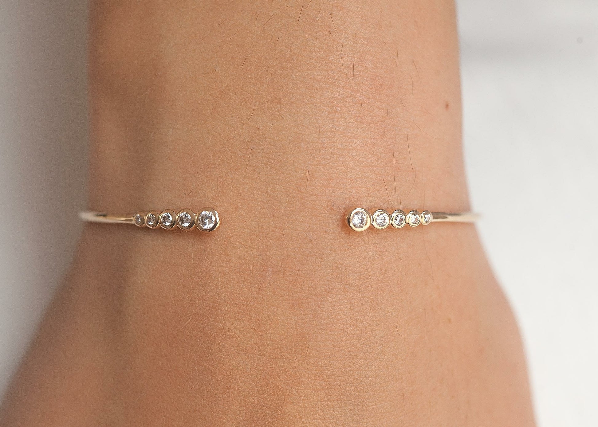 Très joli bracelet jonc plaqué or serti de 10 petits zircons.