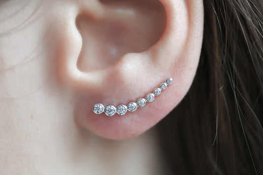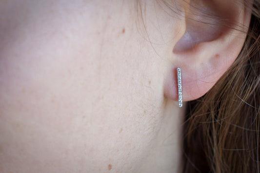 Boucles d'oreilles montantes serties de zircons plaqué or