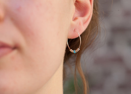 Boucles d'oreilles petites créoles avec pierre colorée plaqué or