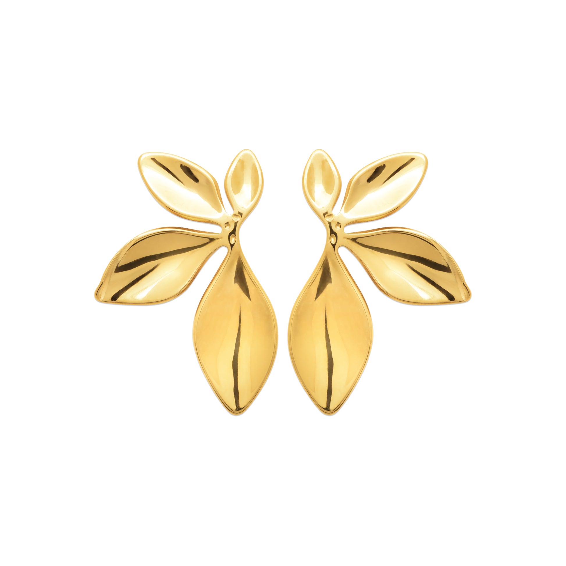 Ces boucles d’oreilles feuilles en acier doré séduisent par leur design délicat et leur éclat doré lumineux. Inspirées par la nature, elles représentent trois feuilles finement travaillées, pour un rendu à la fois féminin et élégant.