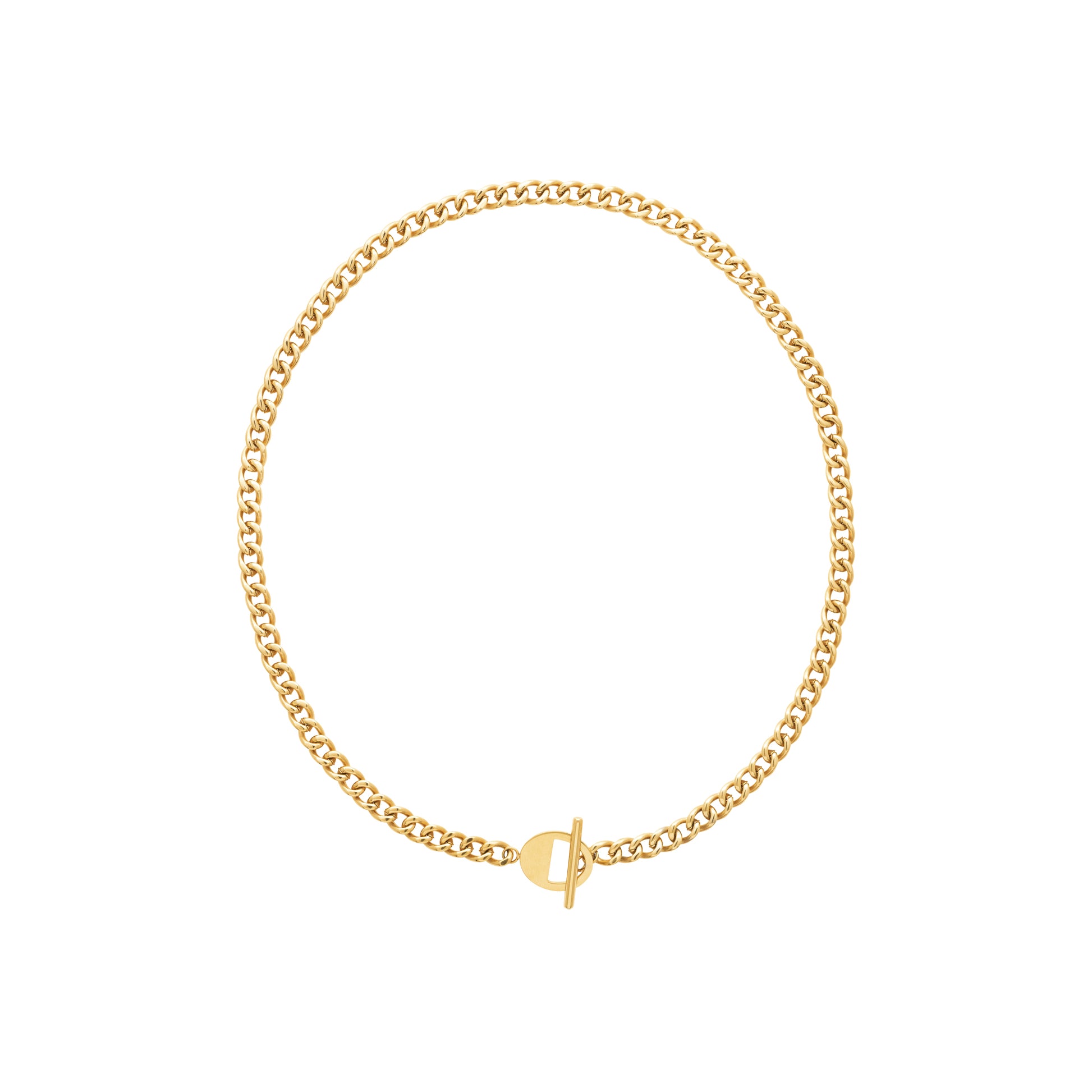 Ce collier au design intemporel allie élégance et modernité. Sa maille gourmette brillante épouse délicatement le cou, tandis que son fermoir bâton ajoute une touche contemporaine et raffinée.