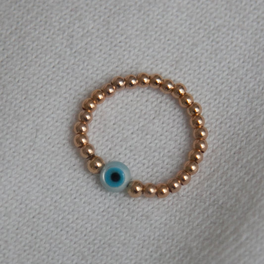 Bague oeil bleu perles plaqué or, Bague porte-bonheur