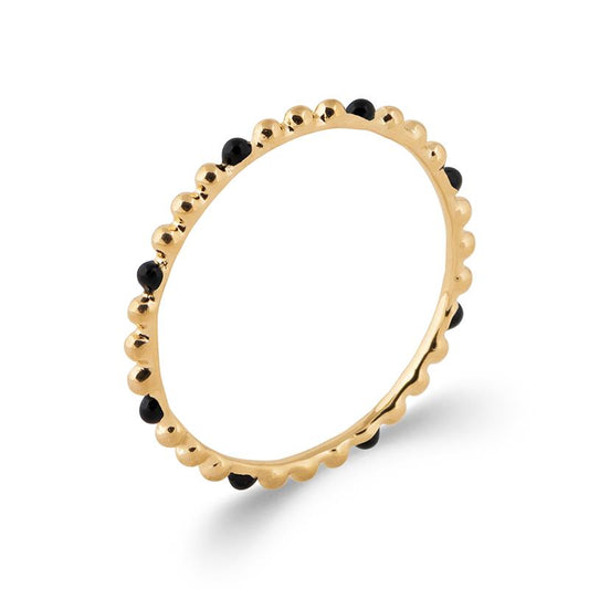 Bague fine perles sertie d'un zircon plaqué or jaune