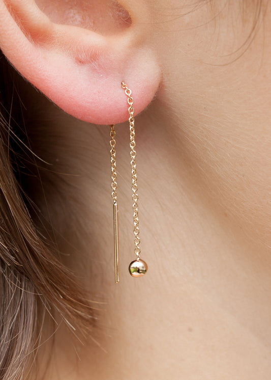 Boucles d'oreilles chaîne traversante avec perle plaqué or