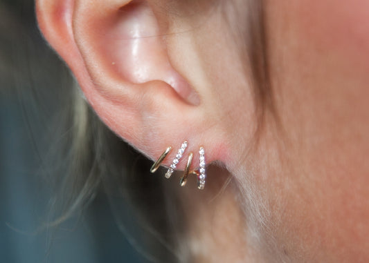 Boucles d'oreilles quadruples serties de zircons plaqué or