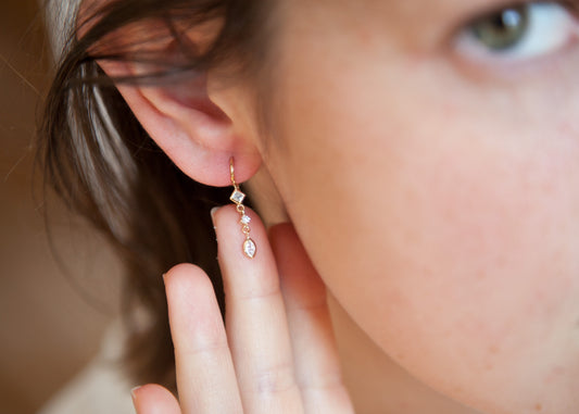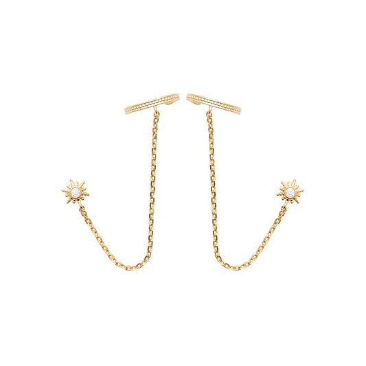 Boucle d'oreille reliée à un Earcuff plaqué or
