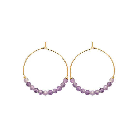 Boucles d'oreilles créoles plaqué or pierre naturelle améthyste
