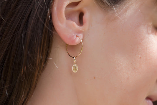 Boucles d'oreilles créoles médaille vierge Marie plaqué or