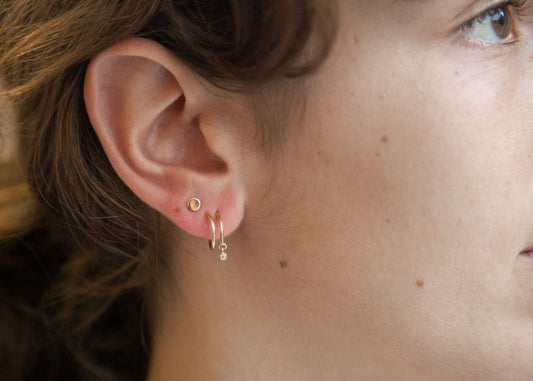Boucles d'oreilles Petites Puces serties de zircons colorés plaqué or