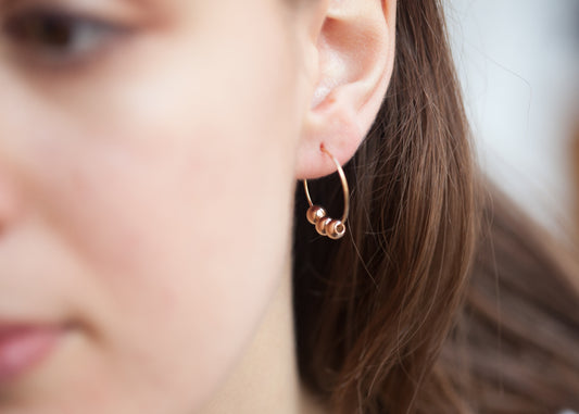 Boucles d'oreilles créoles 3 perles plaqué or 16 carats