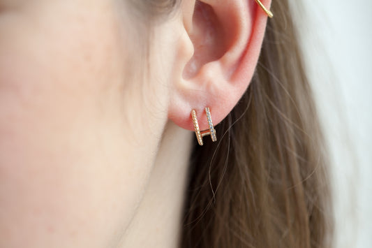 Boucles d'oreilles créoles doubles serties de zircons plaqué or