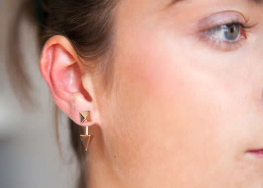 Boucles d'oreilles pyramide dessous de lobe plaqué or