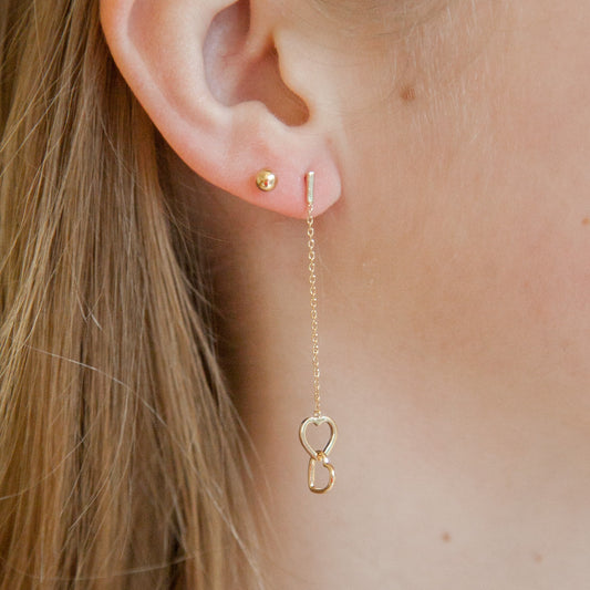 Boucles d'oreilles chaîne 2 coeurs entrelacés plaqué or
