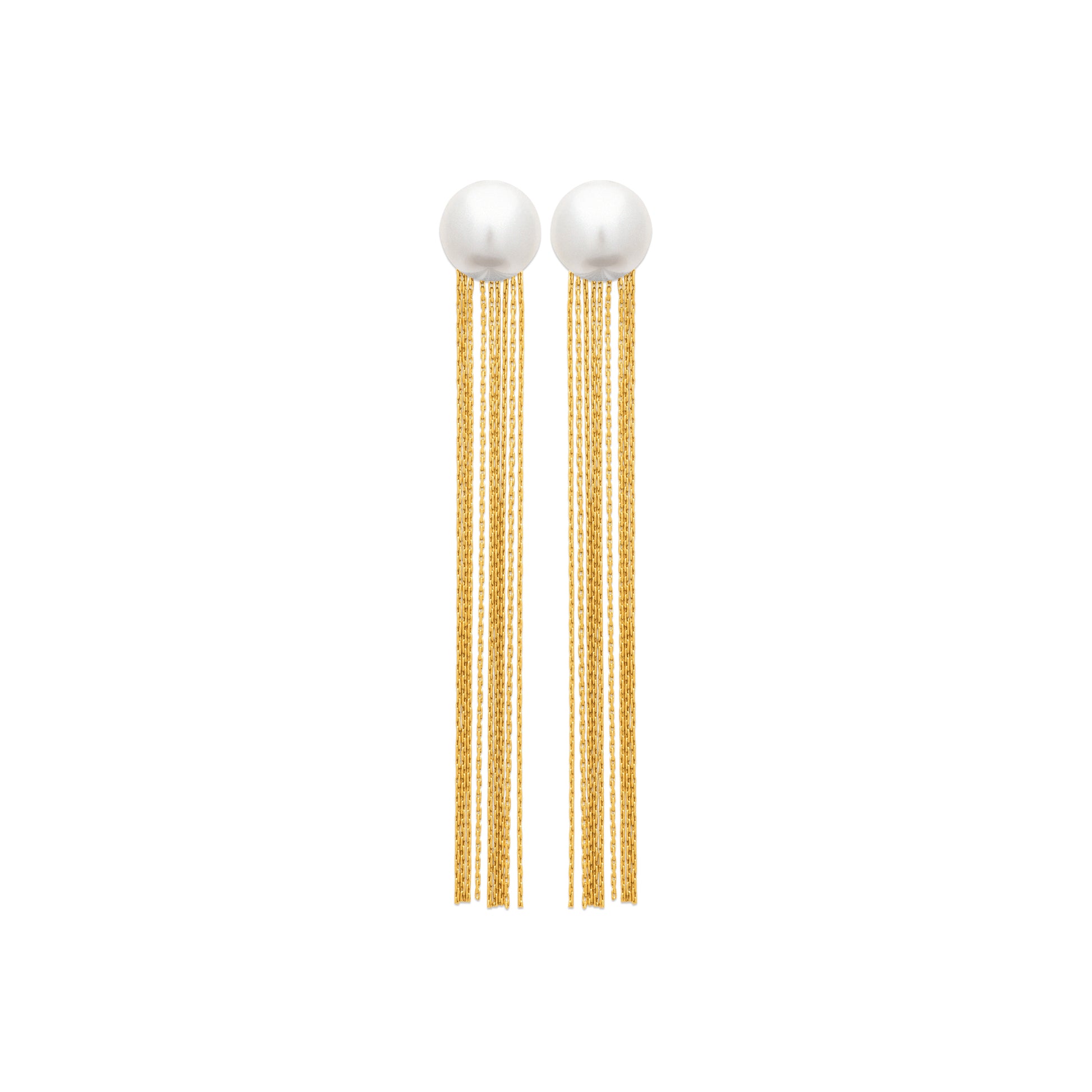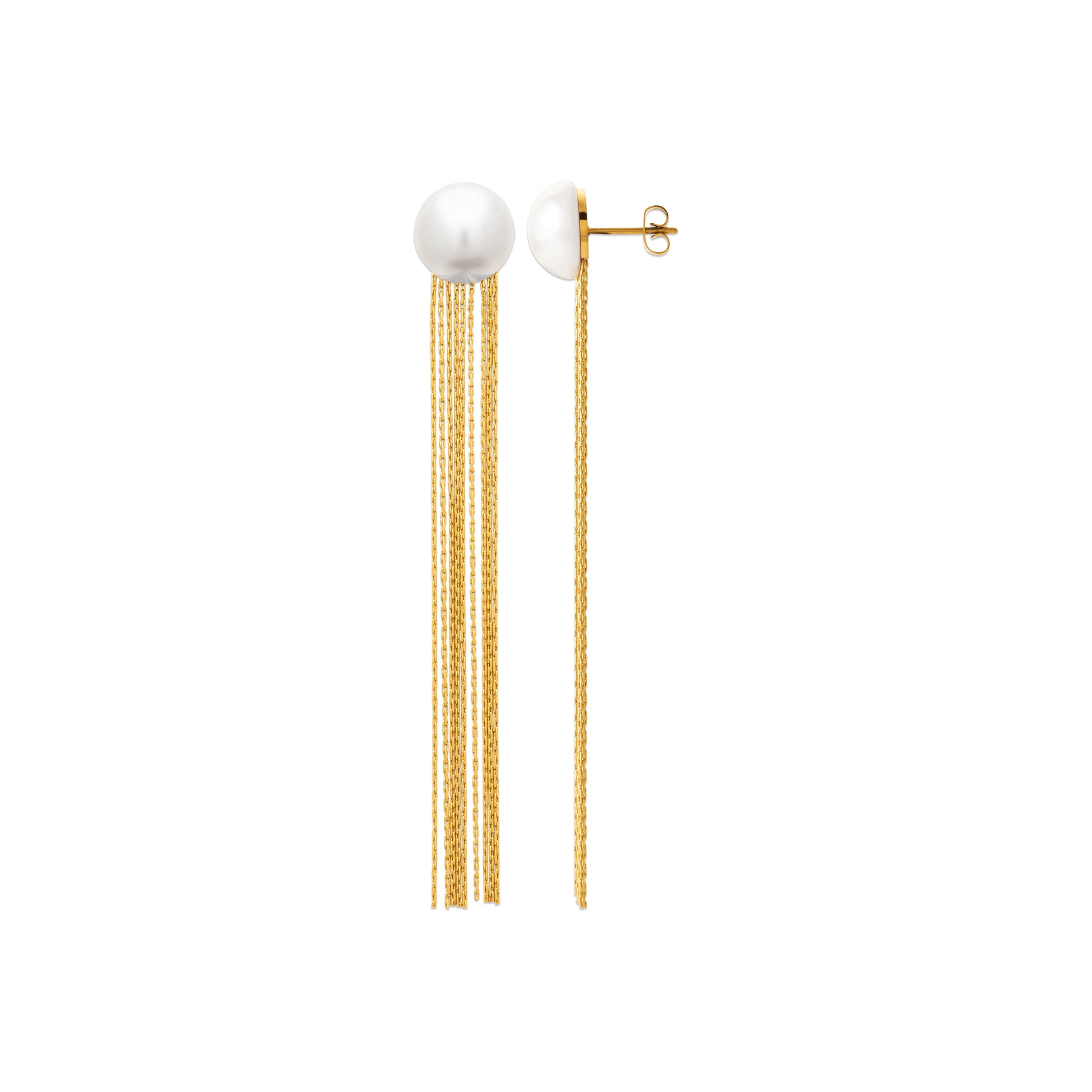 Boucles d’oreilles longues dorées avec perle – en acier inoxydable