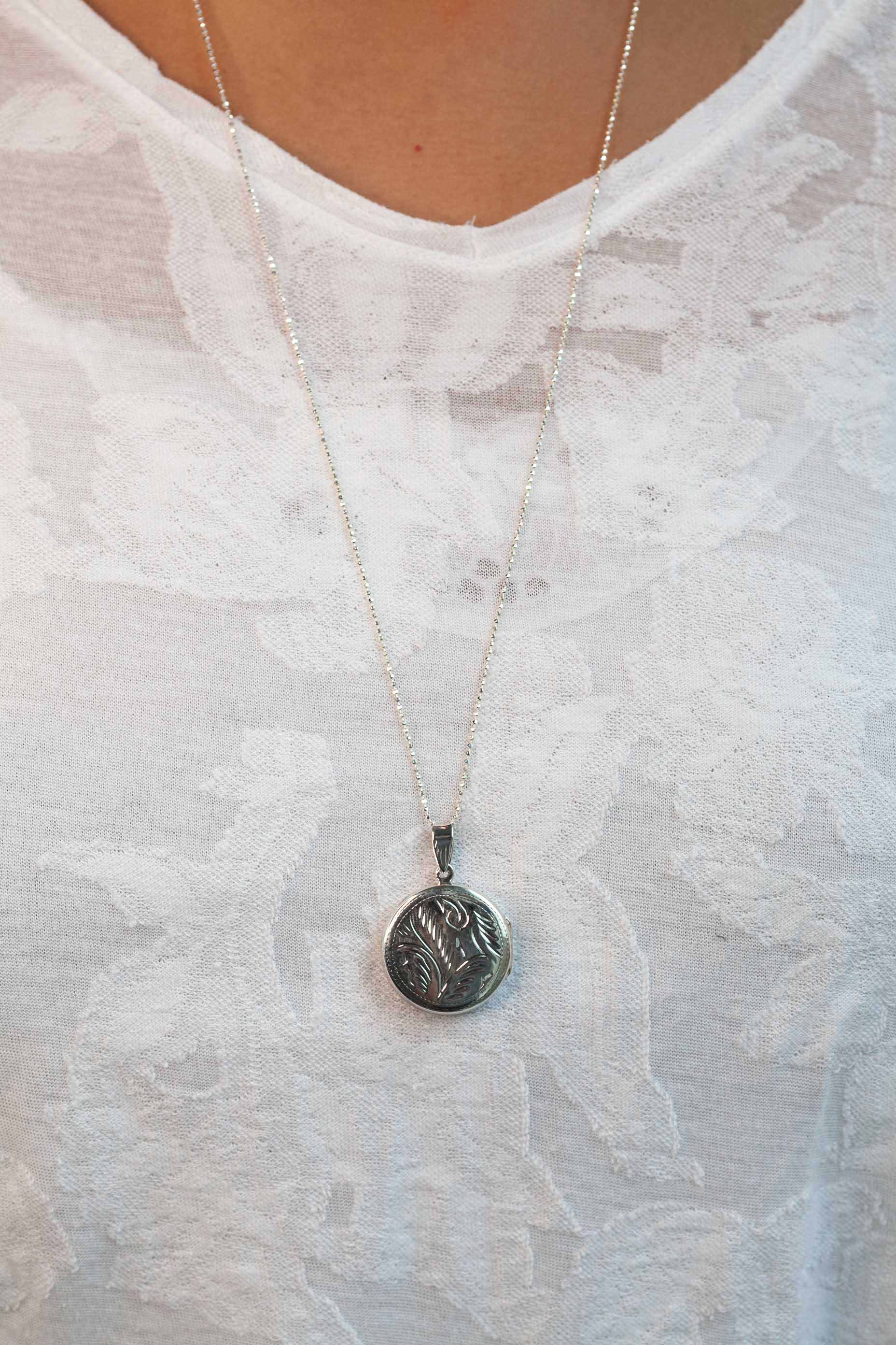 Sautoir pendentif porte-photo en argent