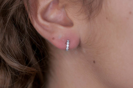 Boucles d'oreilles petites créoles serties de zircons en argent