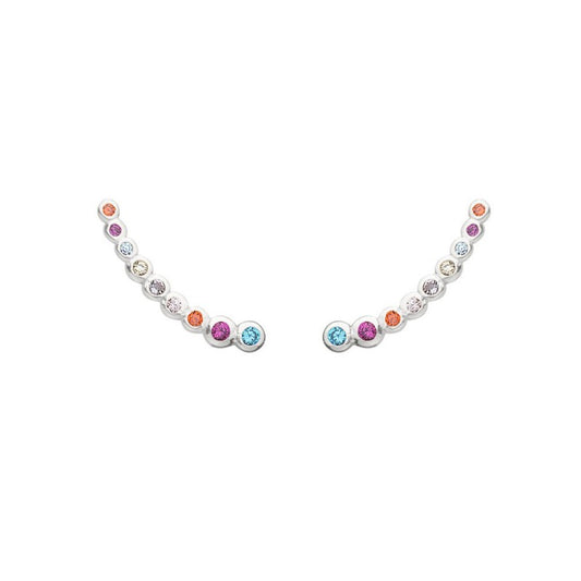 Boucles d'oreilles montantes serties de strass colorés en argent