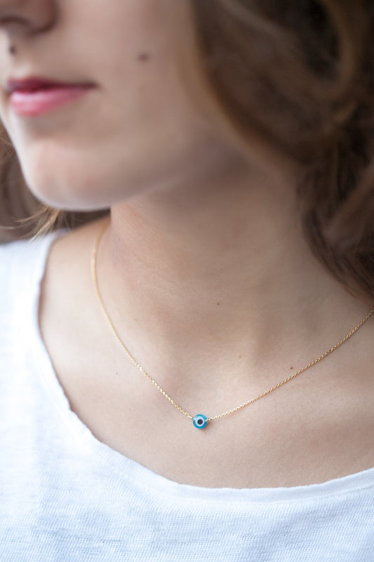 Collier oeil bleu plaqué or - Collier protection mauvais oeil