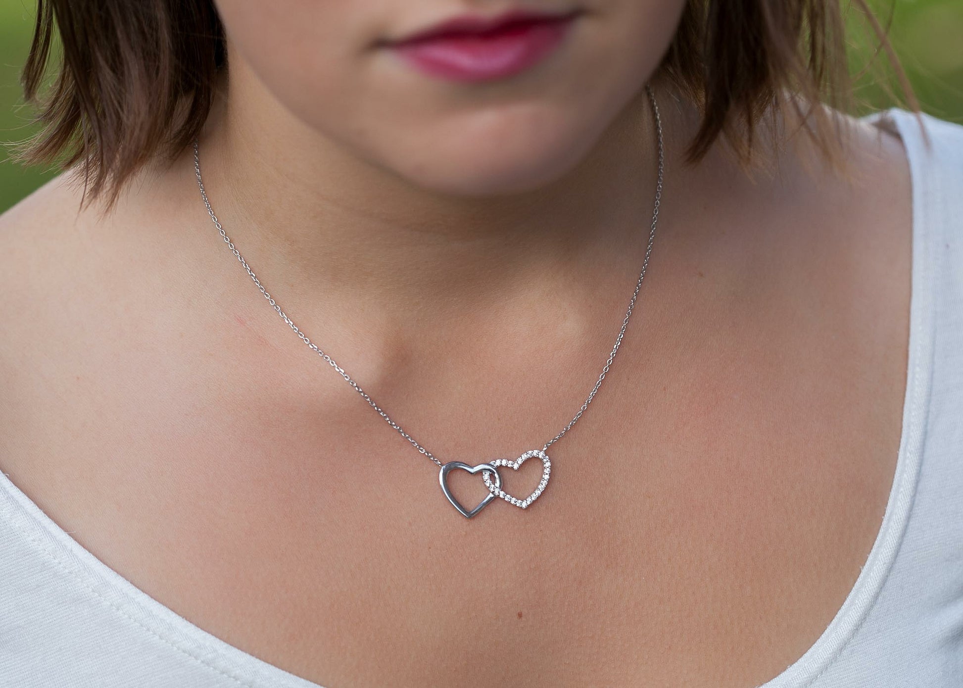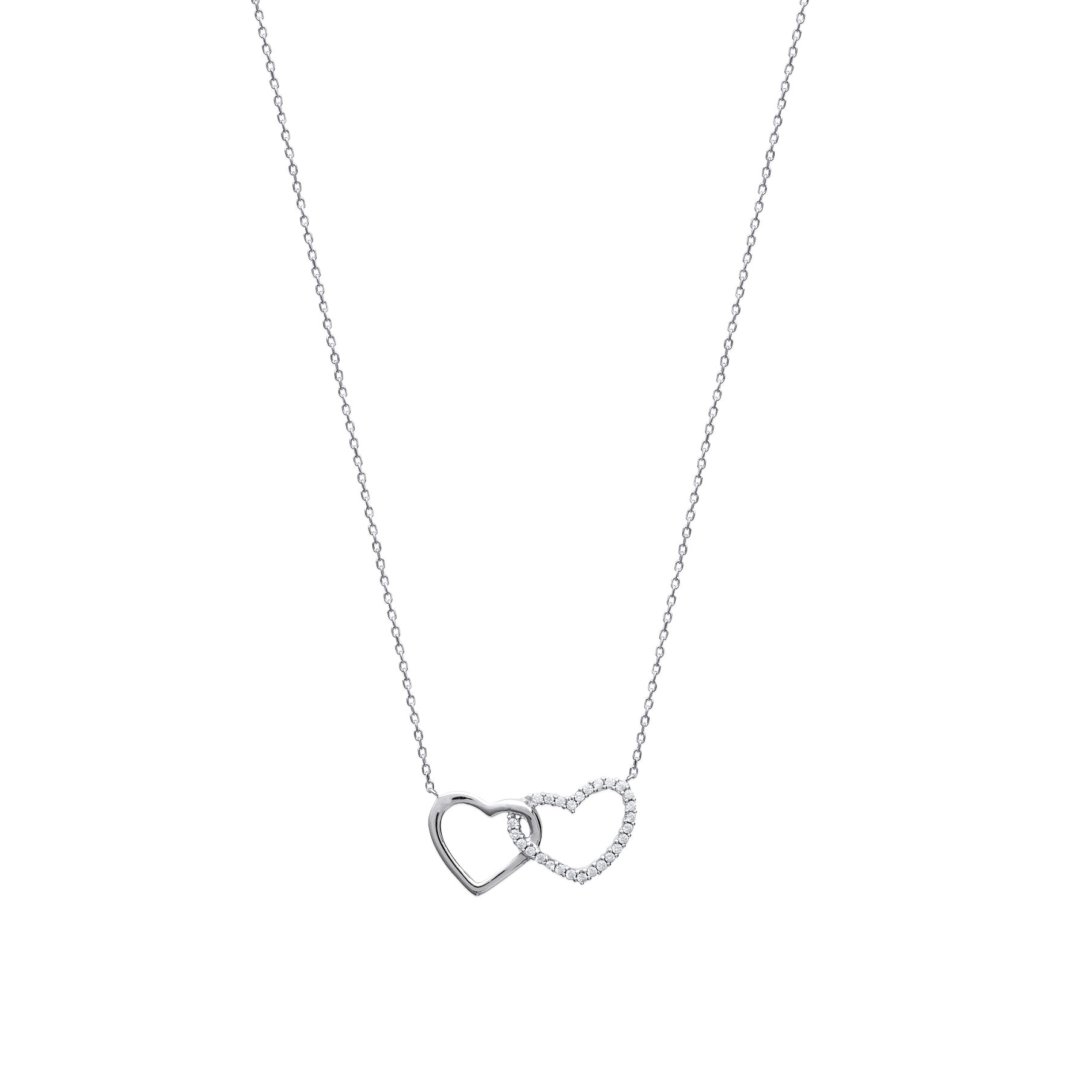 Collier 2 grands coeurs entrelacés en argent serti de zircons